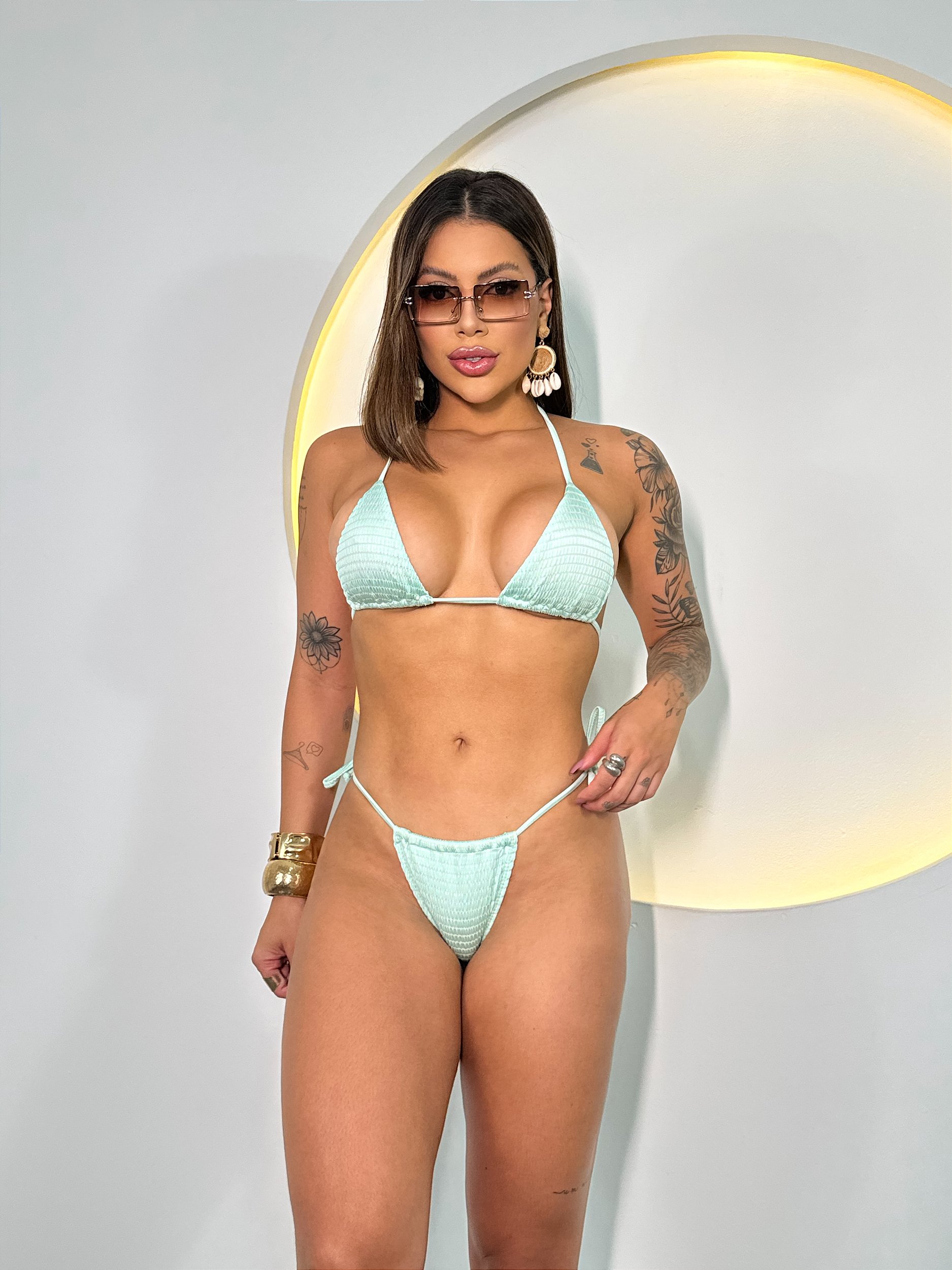 • Todo rebatido com elástico Zanotti (top e calcinha)